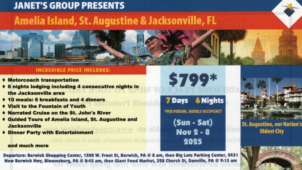 St. Joseph Travel Group serves the local community by offering travel and pilgrimage opportunities for our parishioners and the public. Former Pastor, Father Dominic Mammarella, created this exciting and inspiring fund-raising ministry 30 years ago. Since that time, thousands have traveled with us to destinations in PA, all over the US, and overseas from Italy to Israel.